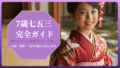 7歳(女の子)四つ身着物に帯を結んで振袖風に赤・水色など華やかな色柄、髪飾りで個性を演出 7歳七五三の完全ガイドはこちら
