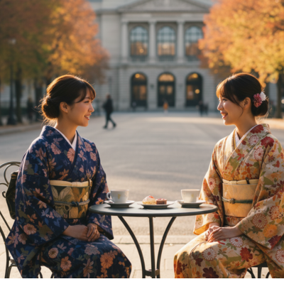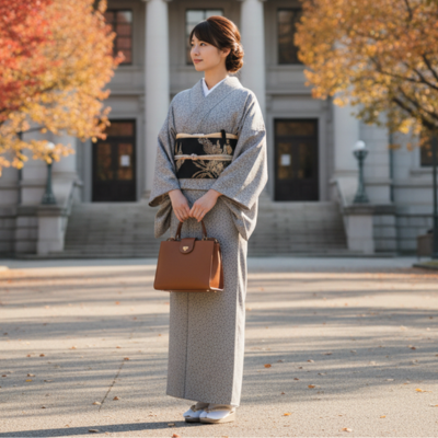 紅葉狩りや美術館巡り、友人とのランチなど、秋は着物で気軽にお出かけできるチャンスが豊富です。