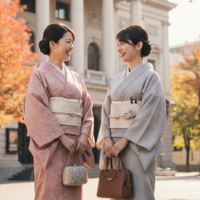 小紋や色無地、江戸小紋を選ぶと少し改まった雰囲気に。名古屋帯や軽めの袋帯を合わせれば、上品さを添えられます。