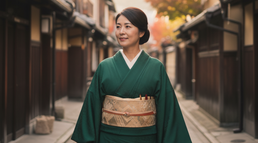 紬や小紋、木綿など動きやすく扱いやすい着物がおすすめ。名古屋帯や半幅帯で軽やかにまとめれば、歩きやすさも抜群です。