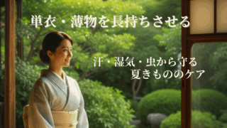 季節のお手入れ 着物長持ちの秘訣:夏物(単衣・薄物)の湿気・虫食い対策!プロに頼むべき汚れの見極め方 夏着物(単衣・薄物)を長持ちさせるお手入れの基本を紹介。汗・湿気・虫食いを防ぐ保管術から、プロに任せる汚れの見極め方まで、着付け師の経験をもとにわかりやすく解説します。清潔で美しい夏の着物を守るための決定版ガイドです。 2025.10.13 季節のお手入れ着物のお手入れ