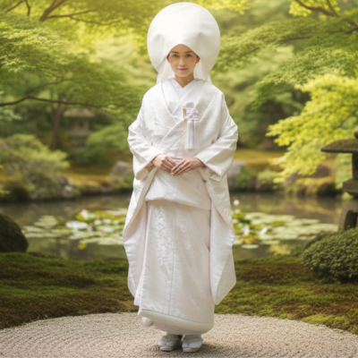A pure white kimono symbolizing purity and new beginnings — traditionally worn for Shinto wedding ceremonies.
