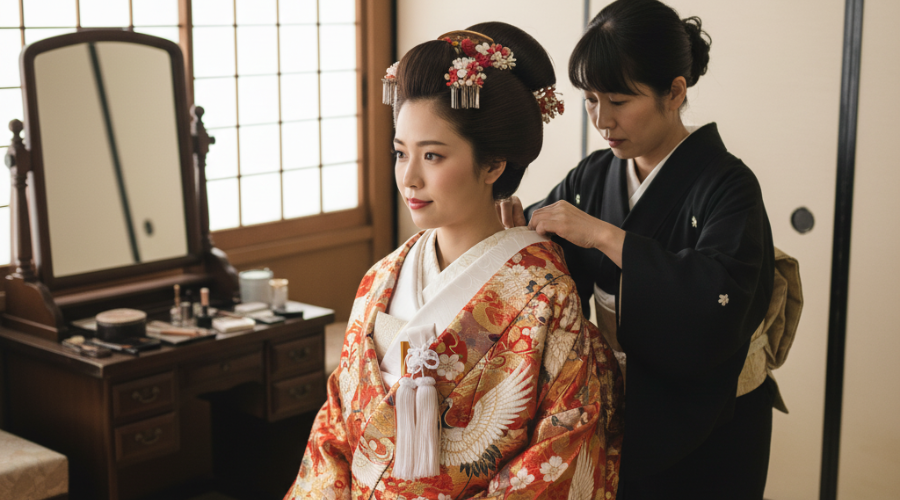 | Dressing & Hair/Makeup | Bridal kimono dressing: ¥30,000–¥50,000Hair & makeup: ¥20,000–¥40,000 | Why is this charged separately?Basic dressing and hair/makeup may be included in the rental package, but additional fees often apply if you change hairstyles or redo your look when switching outfits during the day. |