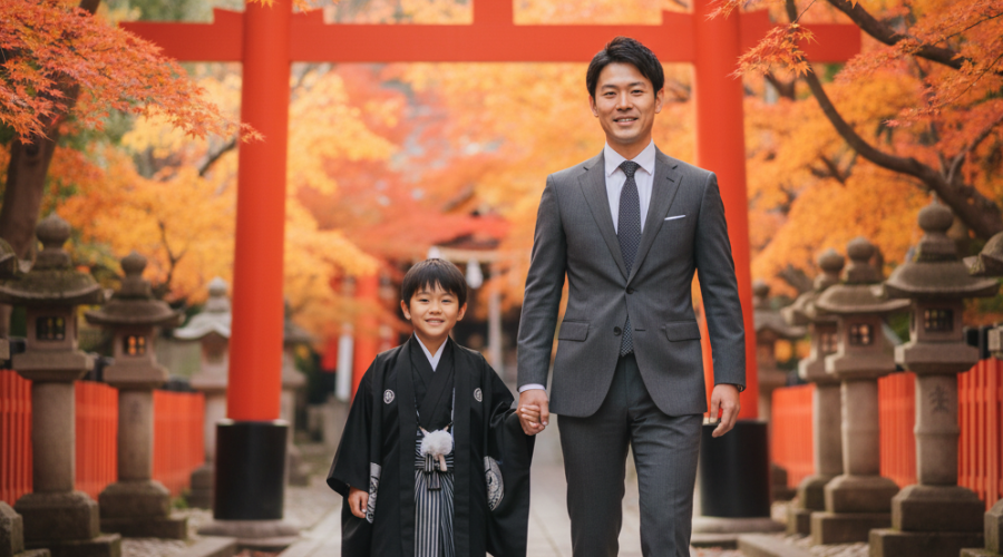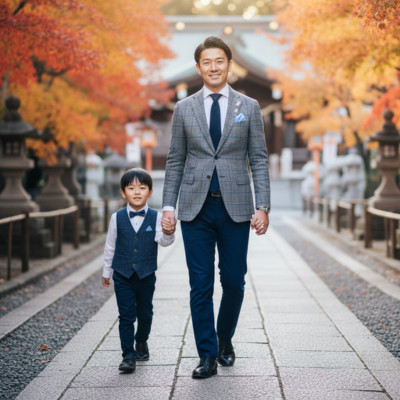 For Shichi-Go-San, the father’s attire should generally be formal to semi-formal.