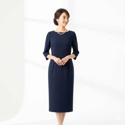 Elegant and refined outfits suit grandmothers well. For kimono, a plain-colored iromuji or a subdued Edo komon is appropriate, while for Western attire, a navy or gray ceremonial suit is recommended. Accessories such as pearls and a tasteful handbag add refinement, and comfortable shoes ensure a relaxed day. As shown in the example, even a simple outfit can feel more festive with the right accessories.