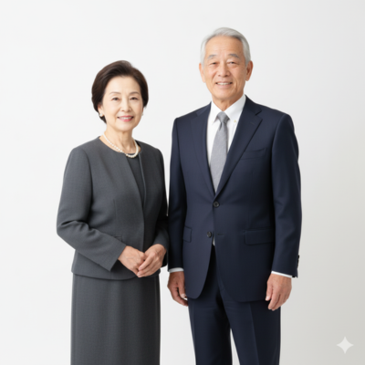 For grandfathers, a dark suit in navy or charcoal gray is the standard. A crisp white shirt with a modest tie and polished leather shoes completes the look. For greater formality, a crested kimono with haori and hakama is also an option. Such calm and dignified attire conveys a reassuring presence as they watch over their grandchild.