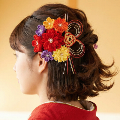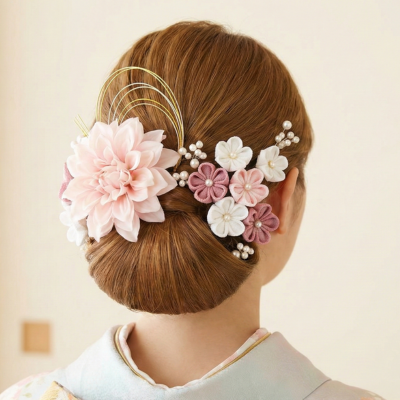 - おすすめの髪飾り: 華やかな大輪の花、古典的なつまみ細工