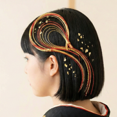 ▼【万能アクセ】金箔×水引セット シンプルなまとめ髪も、これさえあれば一気に華やかに。ショートやボブの方のアクセントとしても大人気です。