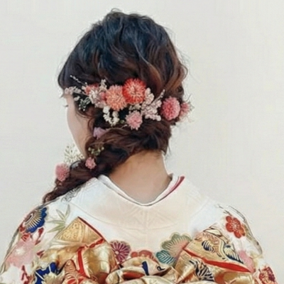 〜柔らかく、儚げな雰囲気が好きなら〜 生花のような鮮やかさと、ドライならではのアンティークな風合いが魅力。ふんわりとしたアップスタイルによく似合います。
