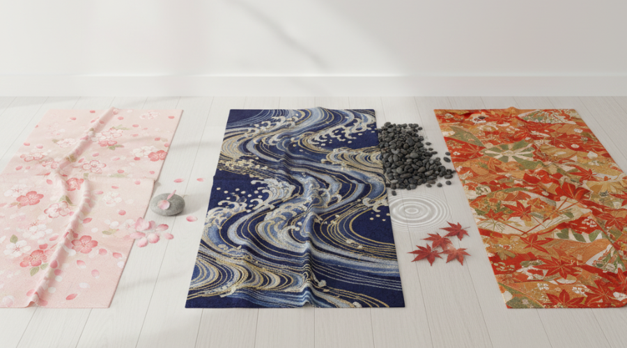春には桜、秋には紅葉といった季節の移ろいを表す柄が好まれ、自然との調和を大切にする文化が反映されています。