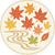 葉が色づいた紅葉だけが描かれている柄。 または、流水と組み合わせた「竜田川(たつたがわ)」文様。
