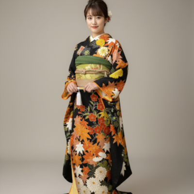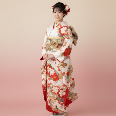 未婚女性の第一礼装。華やかな柄と長い袖が特徴で、成人式や結婚式など慶びの場にふさわしい装いです。