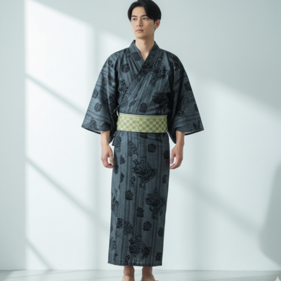 夏の定番スタイル。涼感のある木綿地に粋な柄が映える、花火大会や夕涼みにぴったりの装いです。