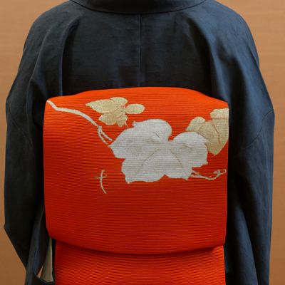 芯の入った九寸名古屋帯も麻素材ならきちんと感が出せますが、小千谷縮や軽めの麻着物には、八寸帯などのラフなタイプがより馴染みます。