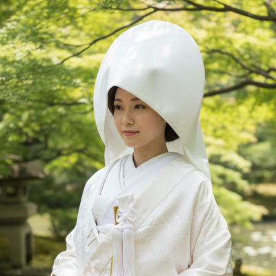 白無垢にのみ合わせる正礼装。挙式中、花嫁が顔を隠すことで「夫以外には顔を見せない」という奥ゆかしい意味を持つ。